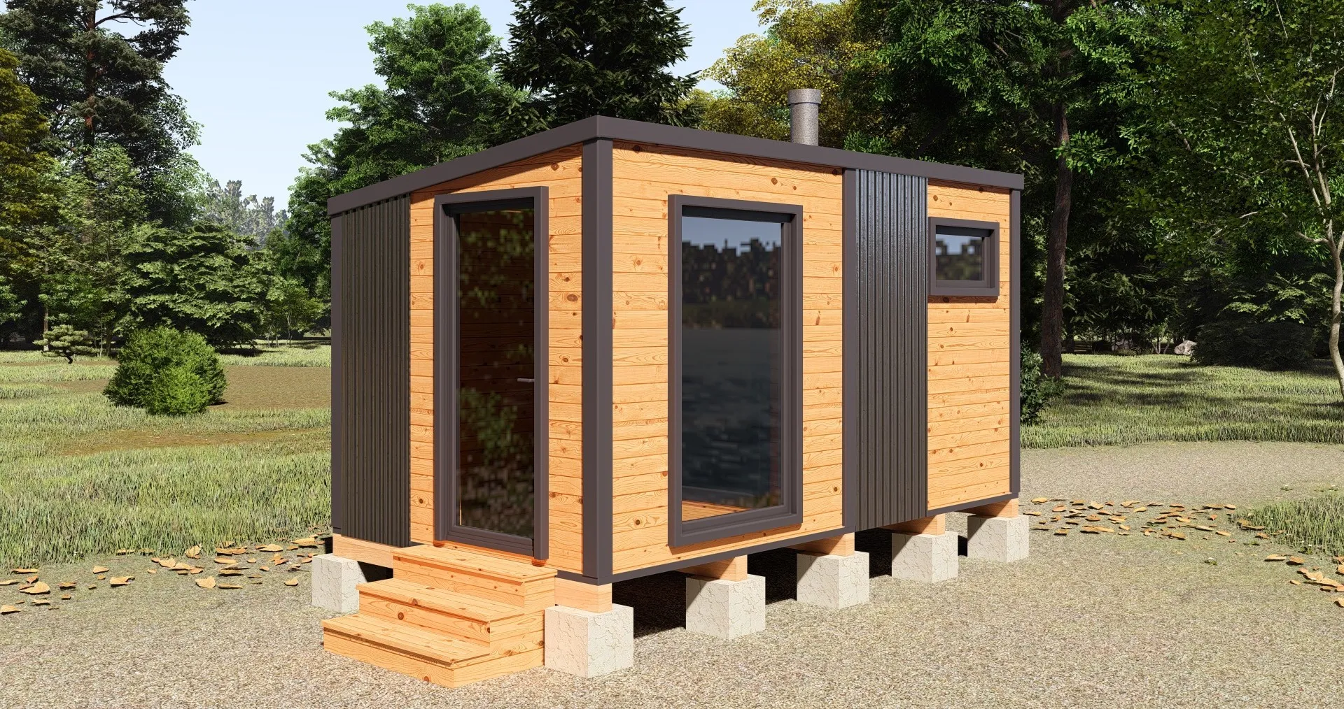 Каркасная баня «Лофт» из кедра 4х2,2 метра Четыре метра элегантной брутальности – это каркасная баня лофт, компактное воплощение свободы от городской суеты и квинтэссенция здорового отдыха в рамках смелого дизайнерского решения. Она, словно миниатюрный завод, перерабатывает ежедневный стресс в пар и ощущение безмятежности, оставаясь при этом ярким акцентом в ландшафтном дизайне. Геометрия каркаса, четкие линии и нарочито грубая отделка задают тон всей конструкции. Здесь нет места лишним деталям, только функциональность и эстетика индустриального минимализма. Дерево, металл и стекло гармонично сочетаются, создавая атмосферу свободы и творчества. Внутреннее пространство, несмотря на компактность, продумано до мелочей. Парилка, отделанная натуральным кедром и оснащенная современной печью, дарит мягкий и обволакивающий пар. Зона отдыха с лаконичной мебелью приглашает расслабиться и насладиться моментом. Большие окна наполняют помещение естественным светом, создавая ощущение простора и единения с природой. Каркасная баня лофт 4 метра – это не просто дань моде, это осознанный выбор в пользу здорового образа жизни и стильного дизайна. Это маленький оазис, где можно забыть о проблемах и восстановить силы, наслаждаясь гармонией пара, дерева и индустриальной эстетики.