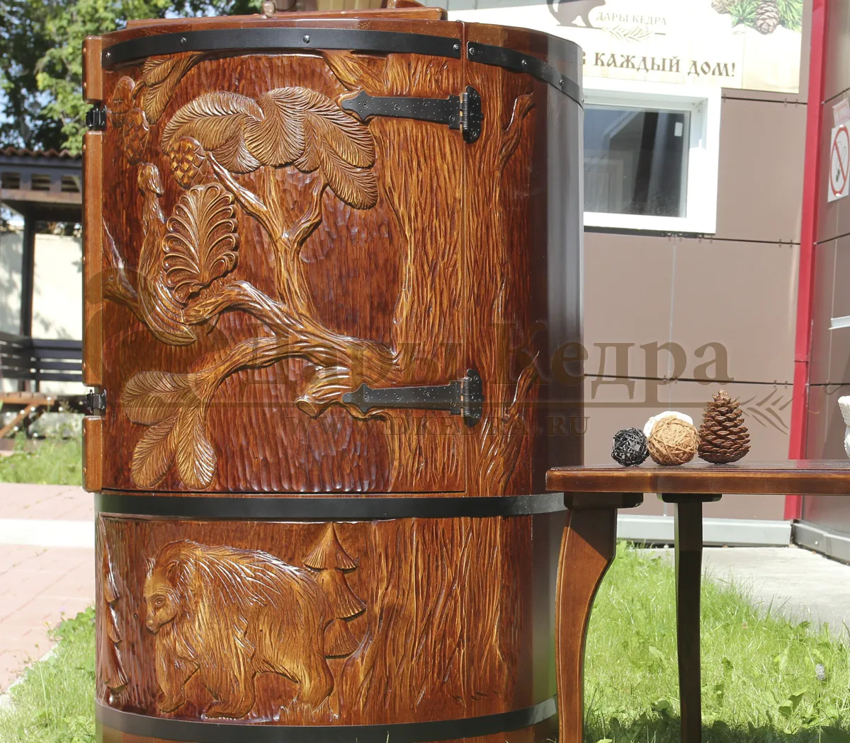 КЕДРОВАЯ БОЧКА С ХУДОЖЕСТВЕННЫМ ОФОРМЛЕНИЕМ
