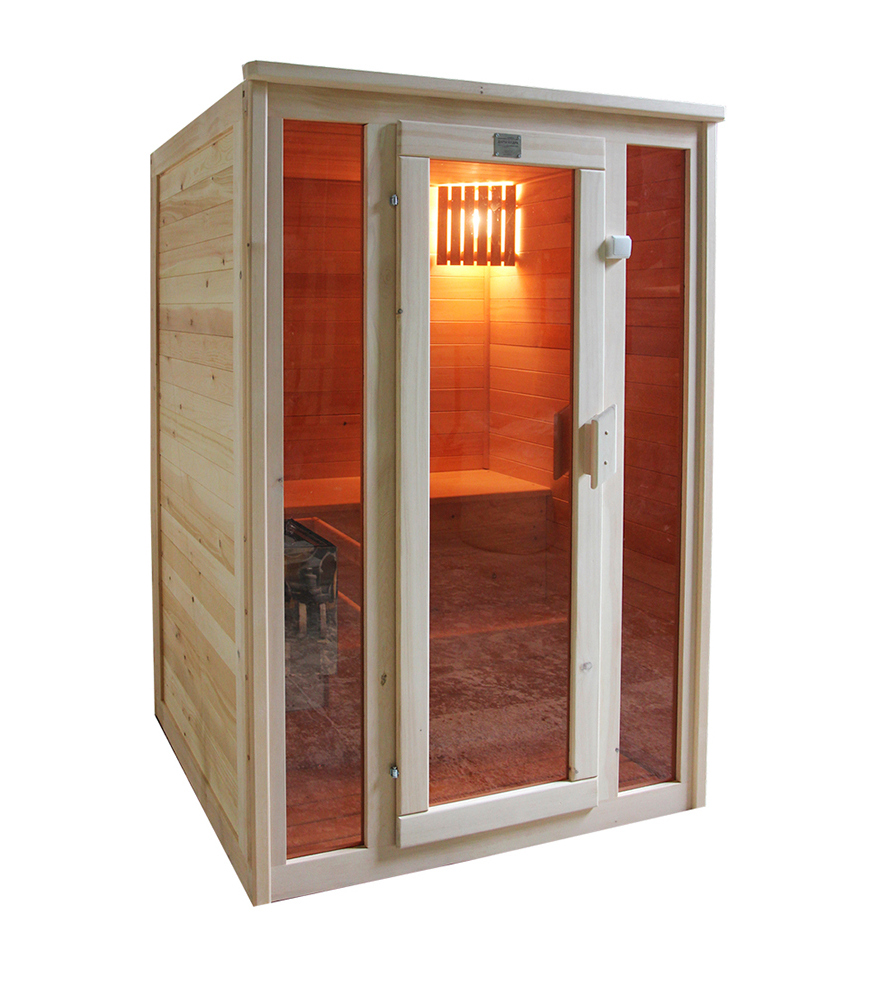 Двухместная финская сауна кабина из кедра с электрокаменкой Это специально оборудованная готовая деревянная кабина для сухого и влажного парения. Электропечь нагревает пространство внутри и позволяет сбрызгивать камни водой, слегка увлажняя воздух. Такая процедура позволяет избежать перегрева. Сауна обшита снаружи и внутри кедровой вагонкой и имеет теплоизоляционный слой. Финская сауна с электропечью подойдет, как для домашнего использования, так и для коммерции. Доставляется в разборном виде щитами, собирается по инструкции с помощью шуруповёрта. Обращаем Ваше внимание, что в стоимость сауны уже включена дверь с закаленным стеклом в раме из кедра с фиксатором и деревянным фасадом справа. Вы можете заменить фасад на цельностеклянный с безрамной дверью за дополнительную плату. Нагреваясь, древесина кедра выделяет полезные вещества-фитонциды, которые благотворно влияют на организм в целом и укрепляют иммунитет.